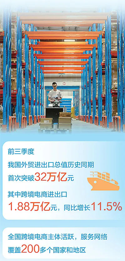 海關總署不久前發布的數據顯示:今年前三季度,我國外貿進出口總值歷史同期首次突破32萬億元,其中跨境電商進出口1.88萬億元,同比增長11.5%。作為以科技創新為驅動,積極運用新技術、適應新趨勢、培育新動能的外貿新業態新模式,跨境電商已經成為我國外貿發展的有生力量,為全球消費者提供了更多元化的購物選擇。
