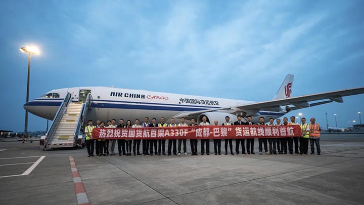 6月2日,航班CA1003從成都雙流國際機場起飛,歷經10個小時,最終抵達巴黎戴高樂機場。該航班順利抵達,標志著由中國國際貨運航空有限公司開行的“成都—巴黎”貨運航線正式開通。本次航班由國貨航最新完成改裝并正式投入商業運營的空客A330(B-6090)全貨機執飛,這也是國貨航空客系列貨機的首次亮相。