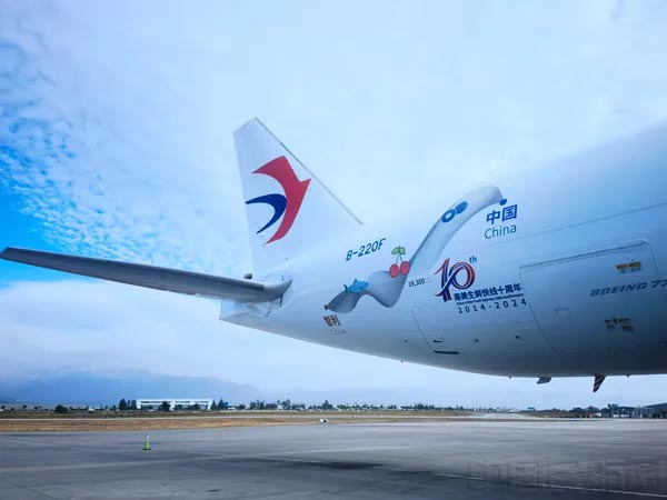 11月20日,東航物流B777F貨機裝載76噸智利新鮮車厘子,從智利首都圣地亞哥經停洛杉磯飛抵上海浦東機場,全程1.93萬公里,用時約25小時。