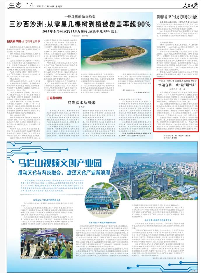 媒體報道人民日報:快遞包裝 減“量”增“綠”